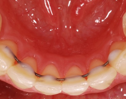 Несъемная ретенционная конструкция представляет собой тонкую, почти незаметную проволоку из специального сплава. Ее крепят на язычную (внутреннюю) сторону зубов. Проволока изготавливается из биологически инертного сплава, не вызывающего аллергических реакций.