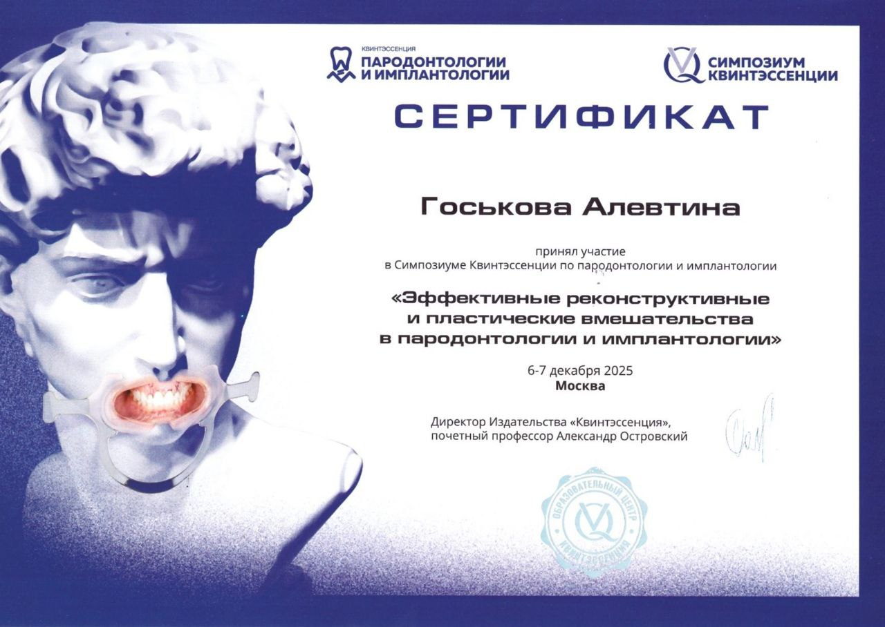 Я недавно проходил лечение парадонтита у стоматолога Госьковой Алевтины Васильевны и был приятно удивлен ее тщательным подходом к работе. После этого я также сделал чистку зубов, и сейчас нахожусь на ортодонтическом лечении у Курганниковой Юлии Владимировны. Мне импонируют такие достоинства клиники, как высокое качество материалов, отличное оборудование и внимательность персонала. Здесь всегда можно обсудить любые…