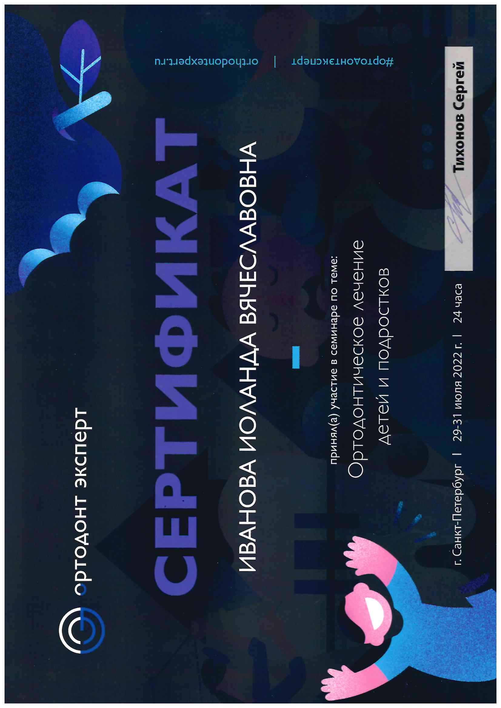 Федеральное государственное бюджетное военное образовательное учреждение высшего образования «Военно-медицинская академия имени С.М.Кирова» Министерства обороны Российской Федерации, г. Санкт-Петербург. Первичная специализированная аккредитация по специальности ортодонтия от 17.06.2022г.