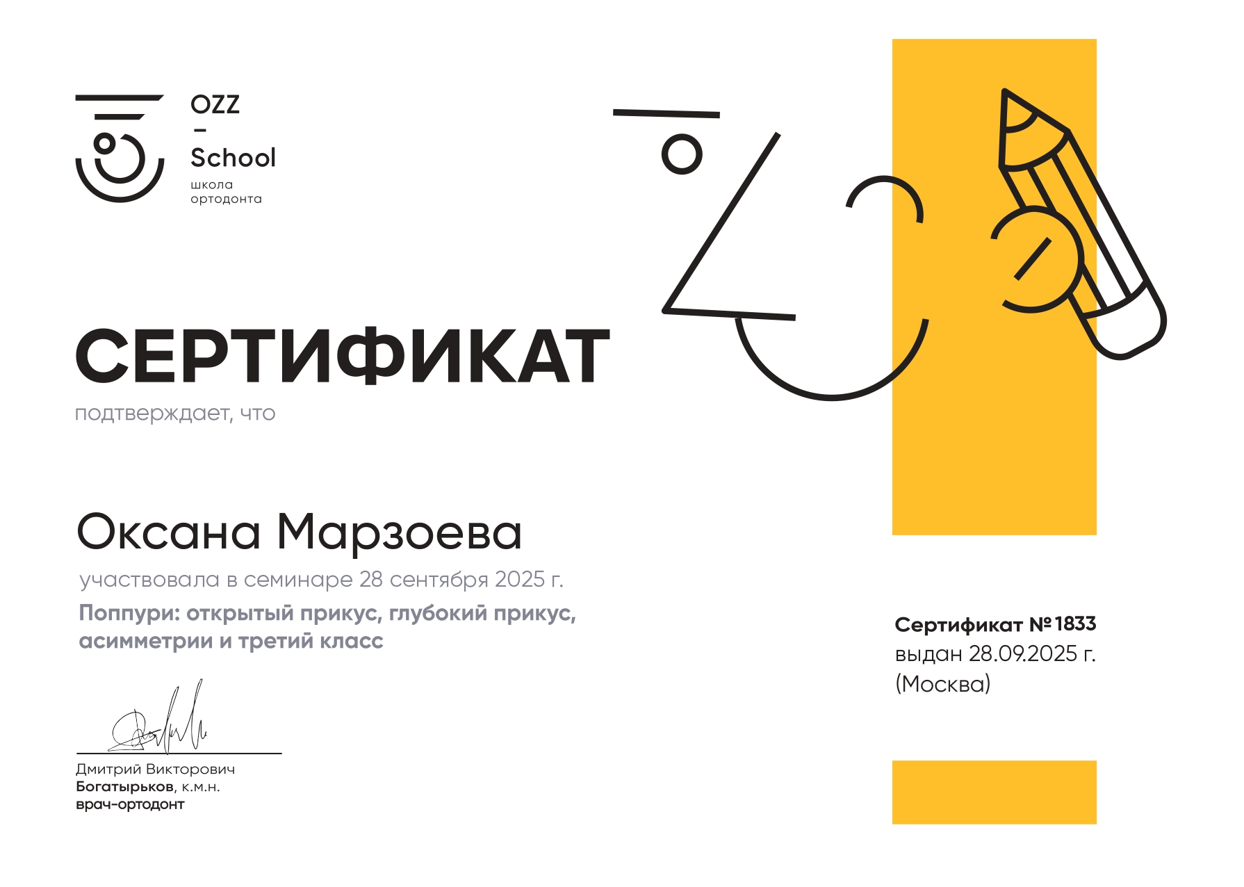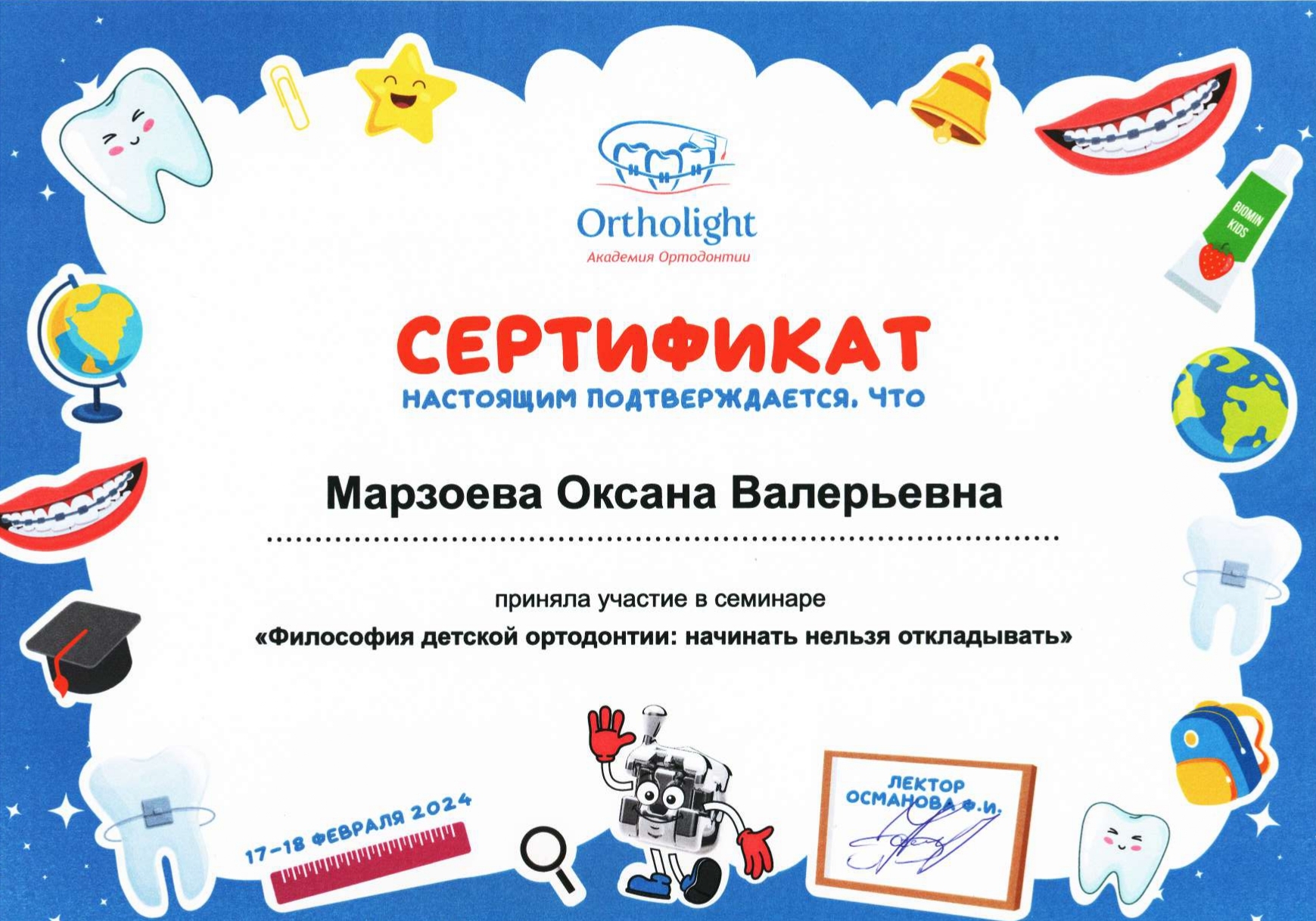 Оксана Марзоева настоящий специалист своего дела. Мы пришли к ней на прием, и уже в первые минуты общения поняли, что будем продолжать здесь лечение. Я обязательно запишу на прием своего второго ребенка и расскажу всем своим знакомым и друзьям о нашем опыте.