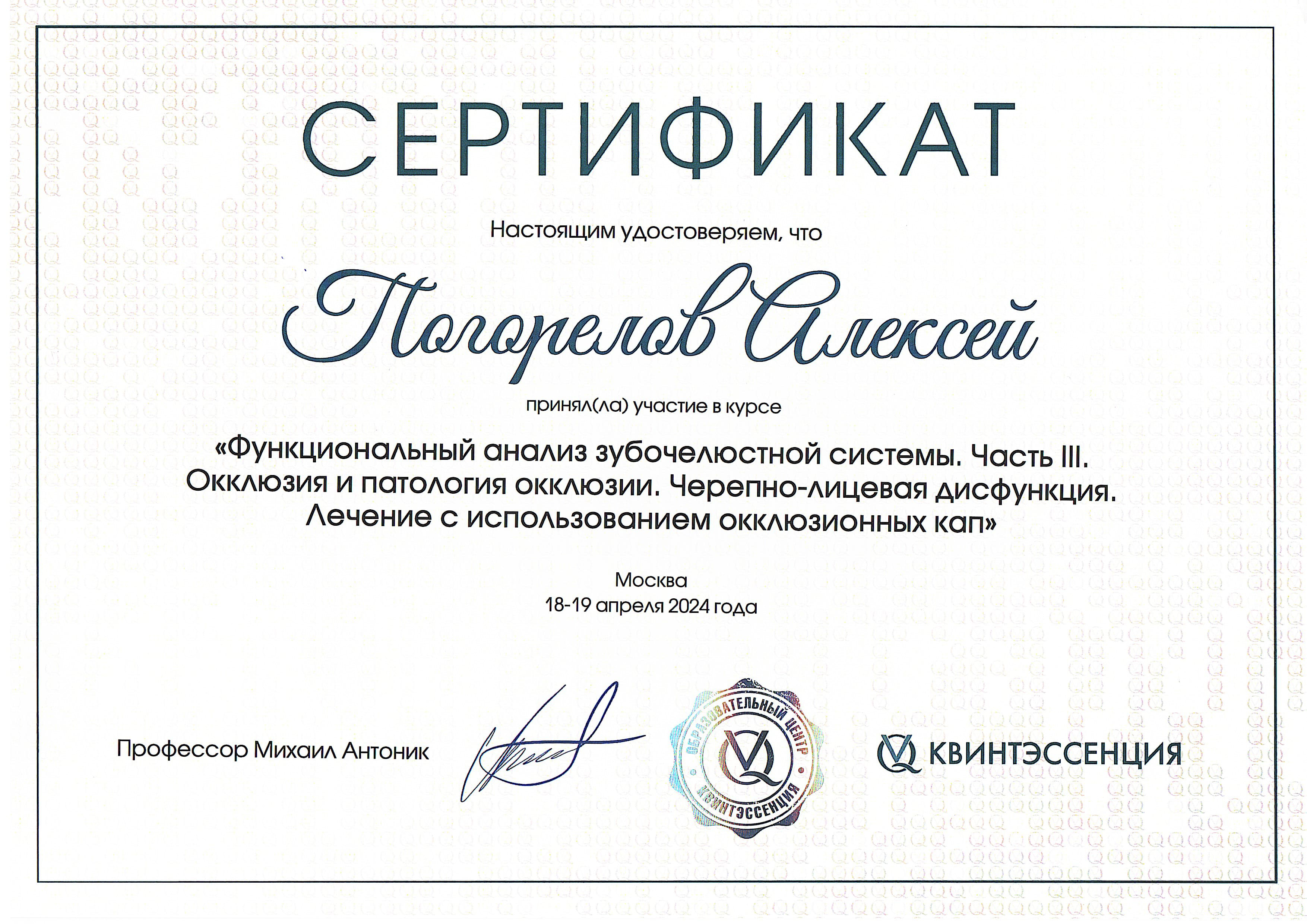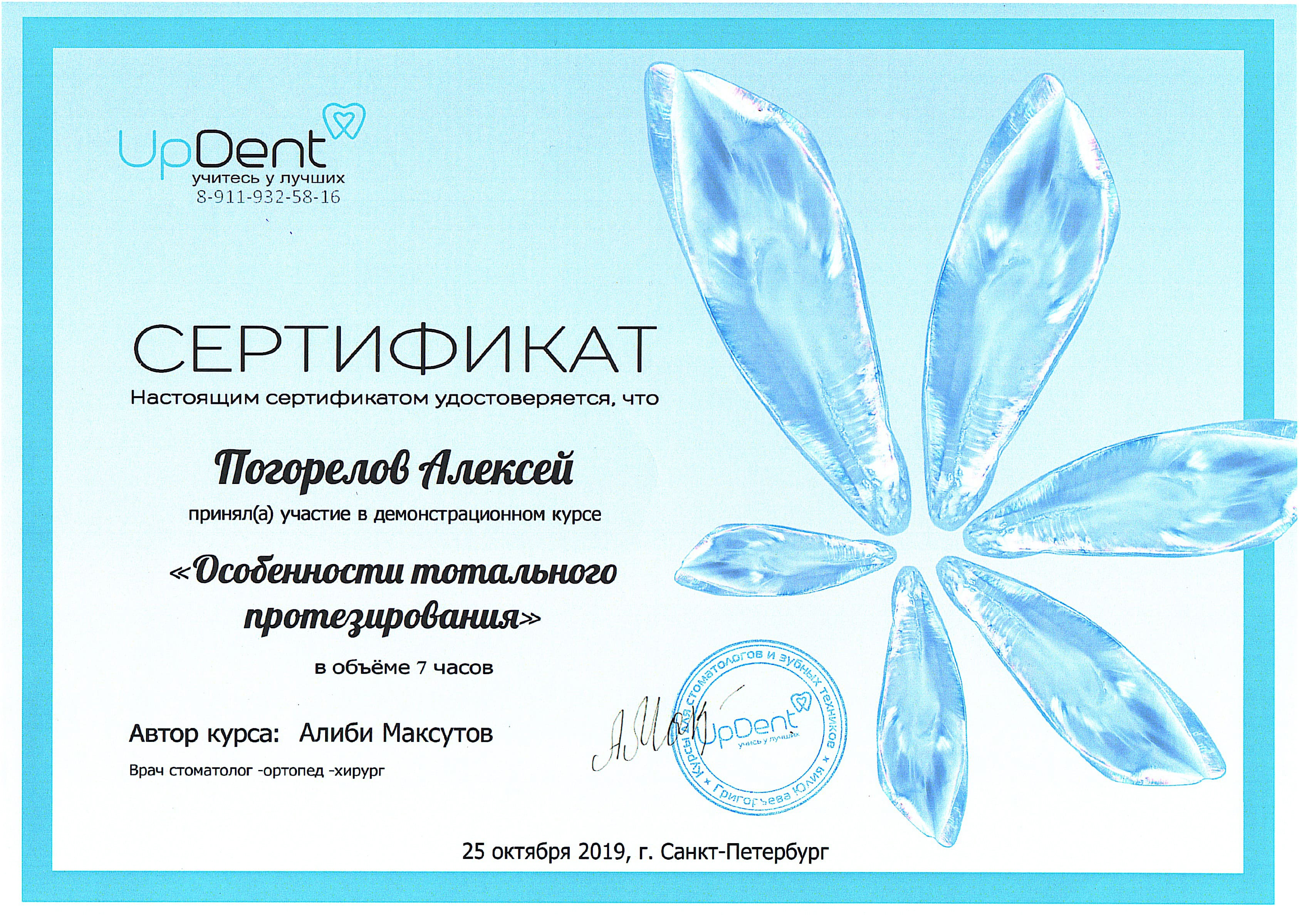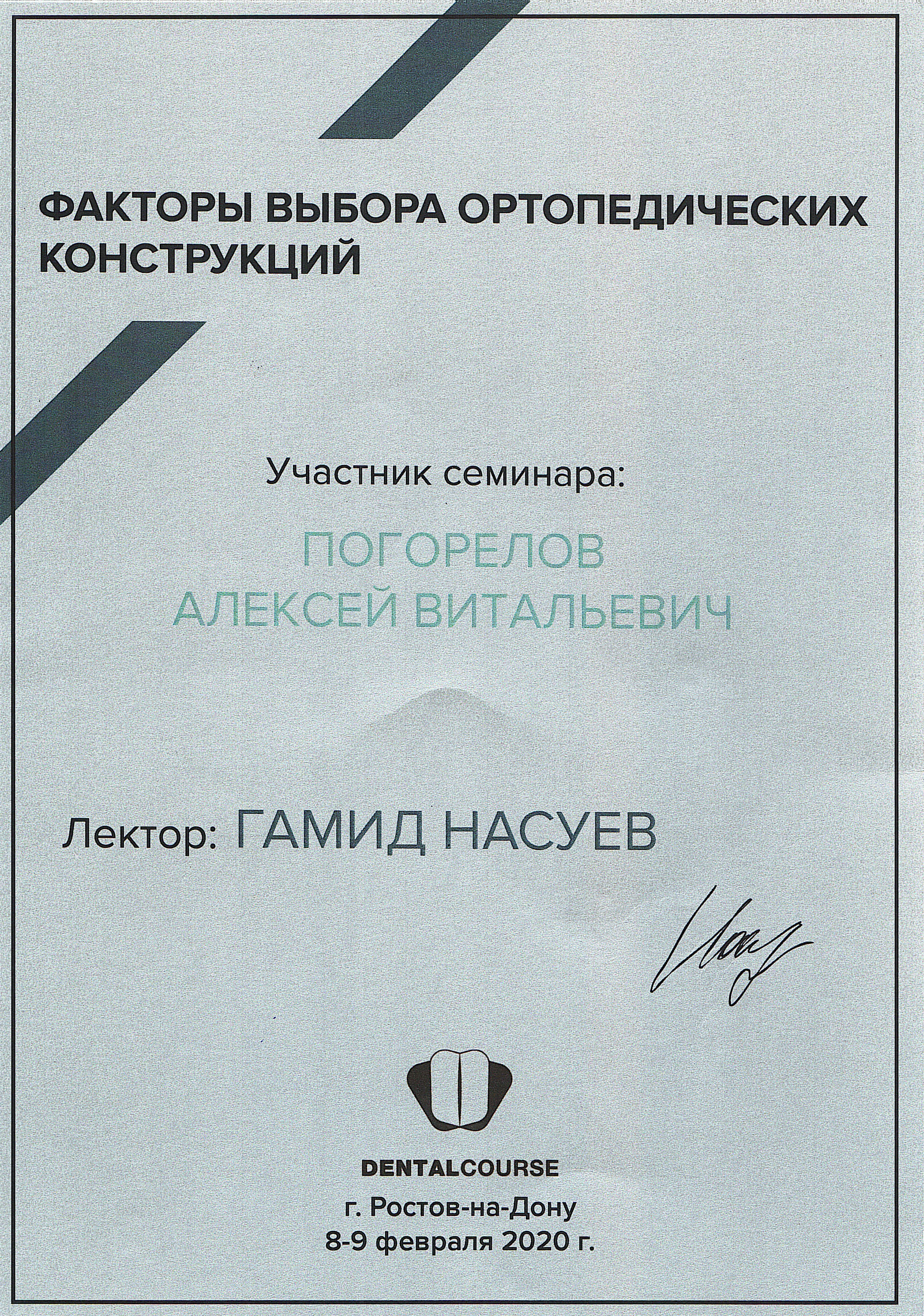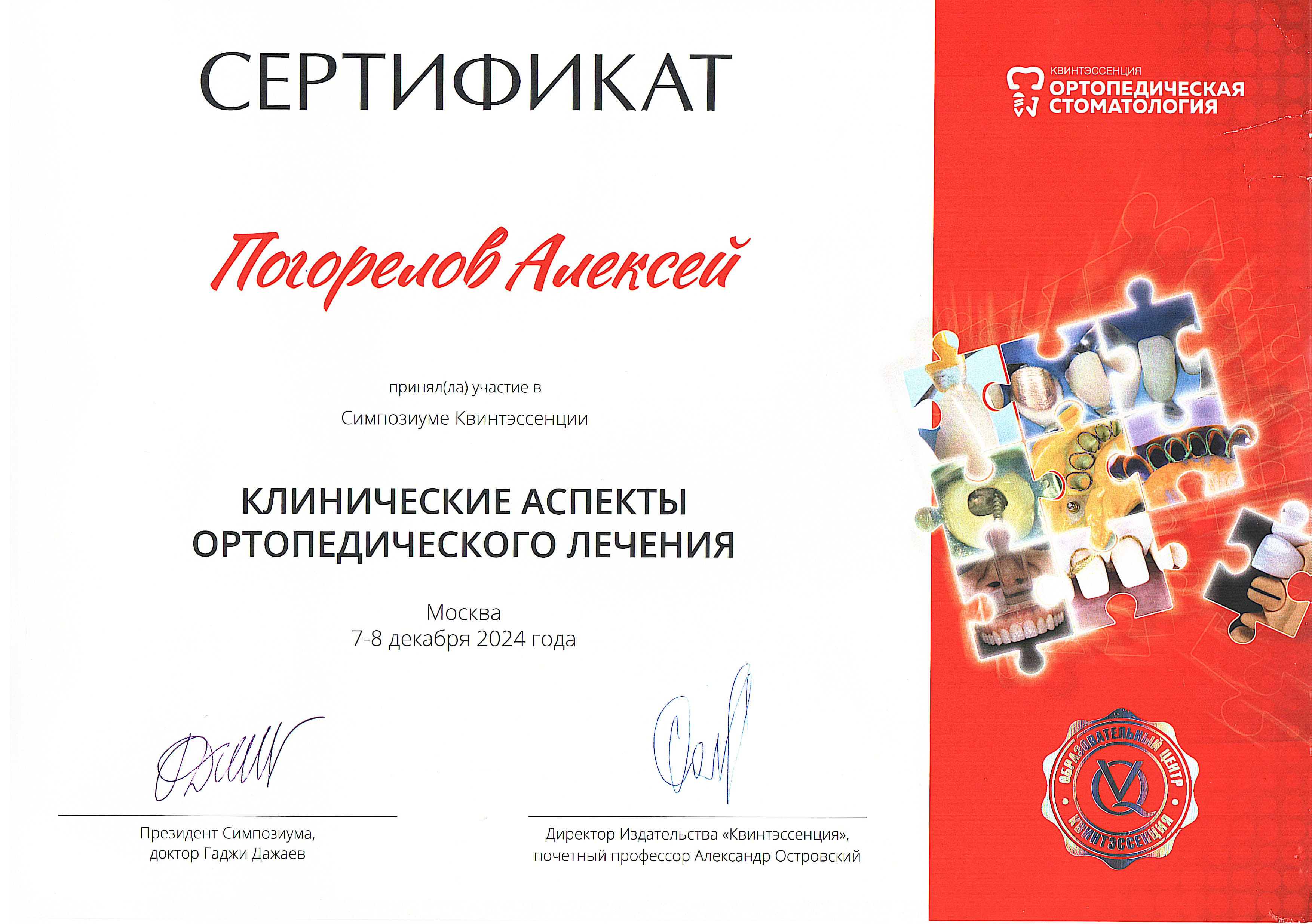 2016 г. — ФБГОУ ВО "Смоленский ГМУ". Научно-практический семинар "Современные технологии, применяемые при стоматологической реабилитации пациентов ортопедическими методами".