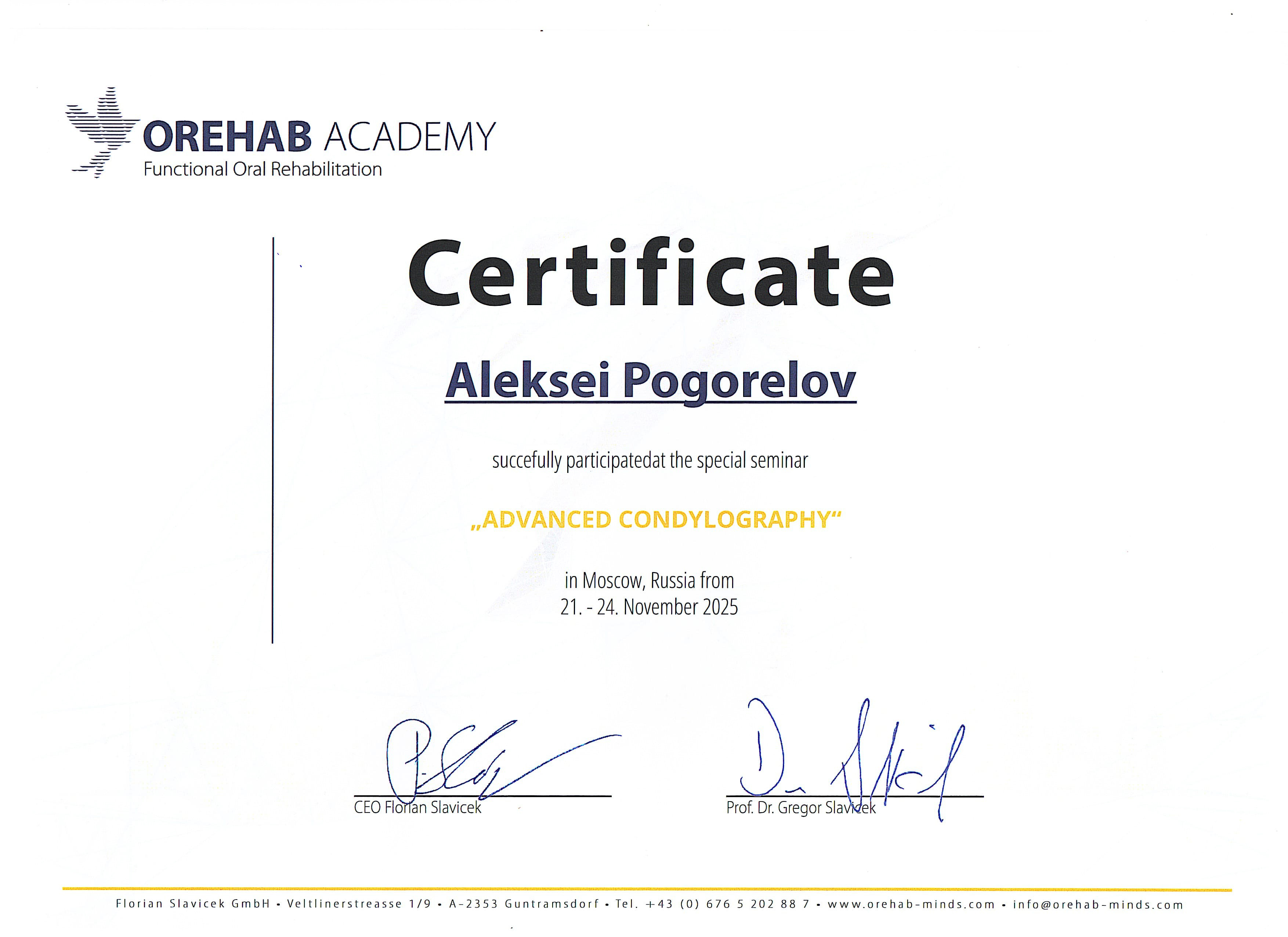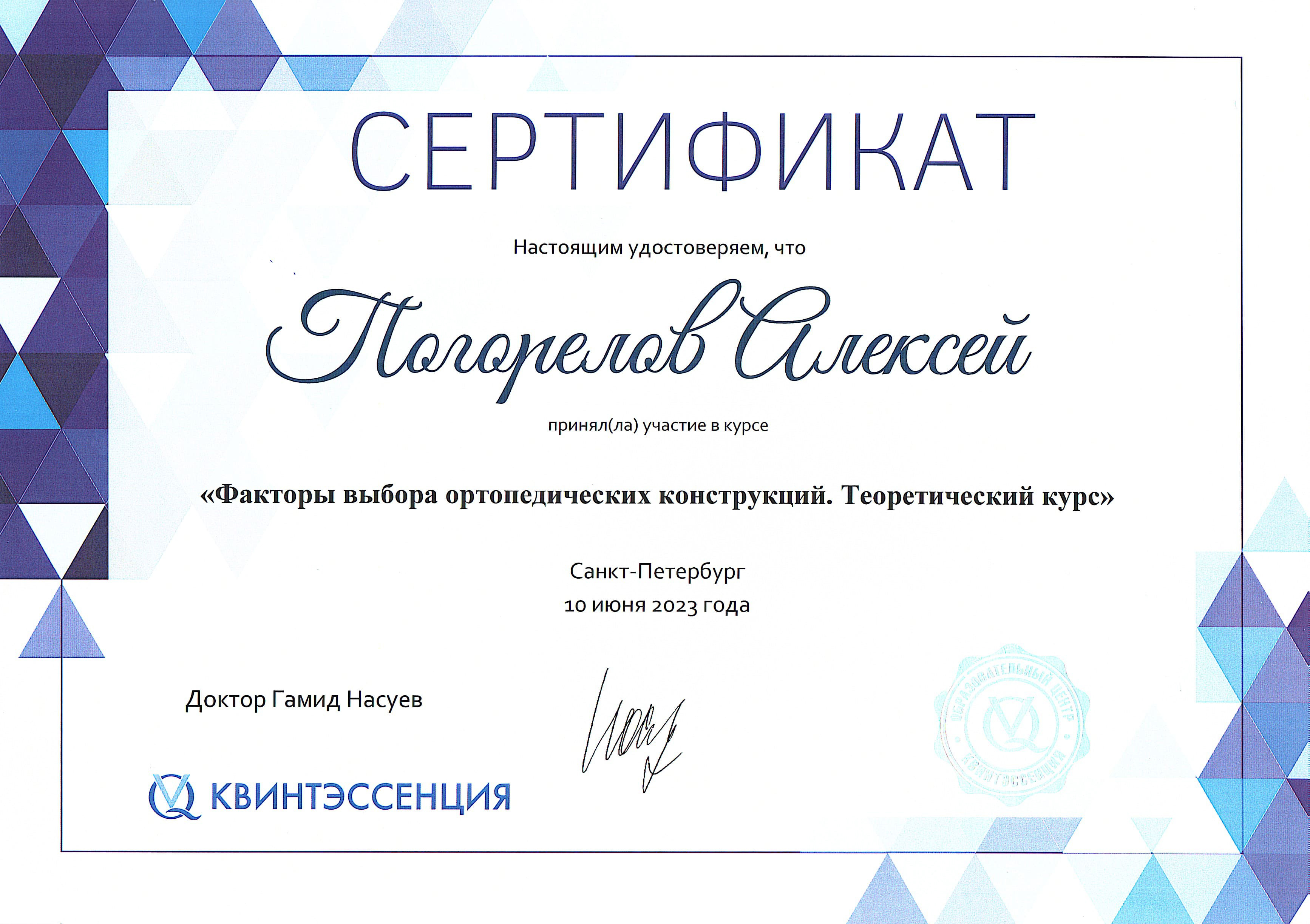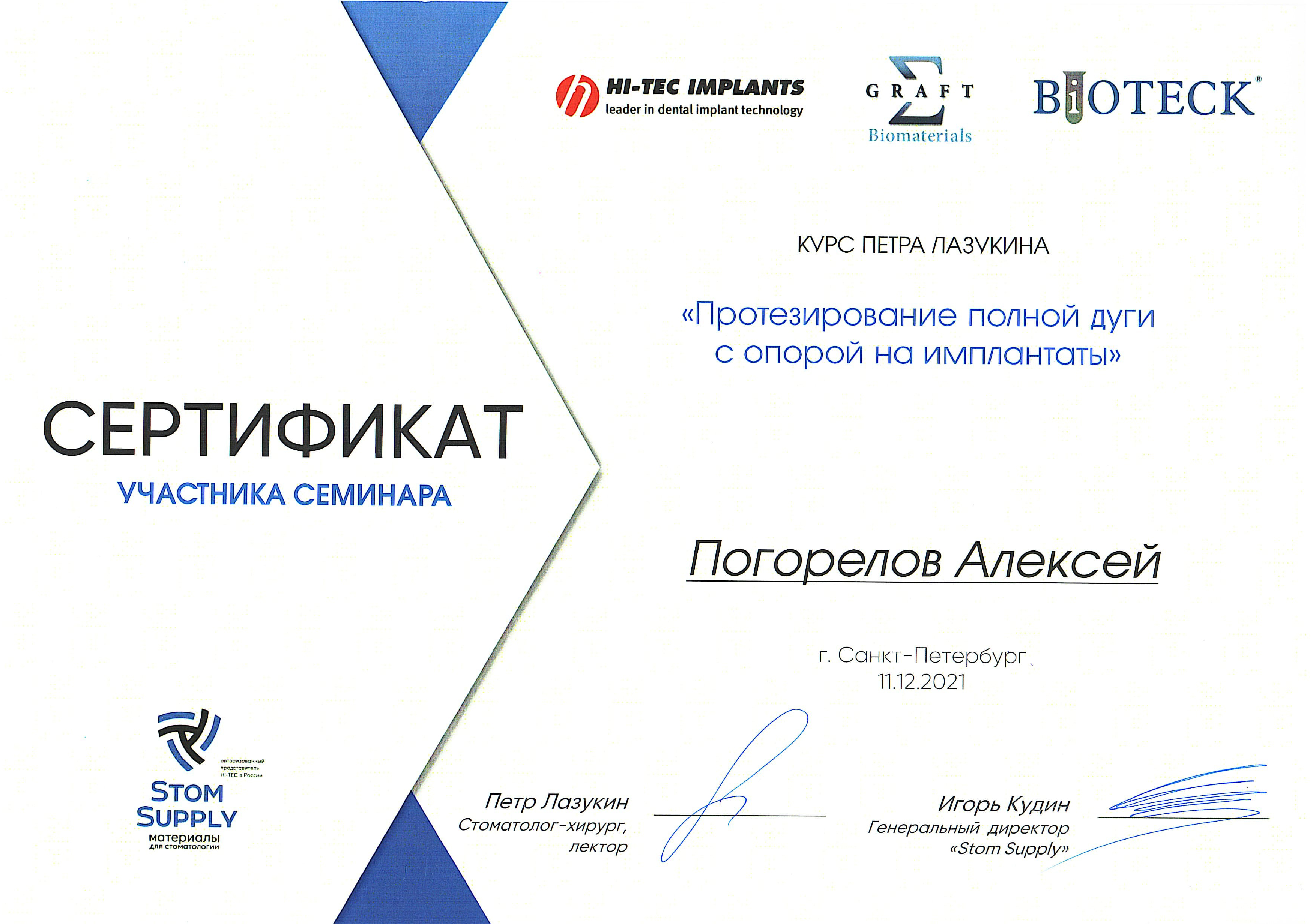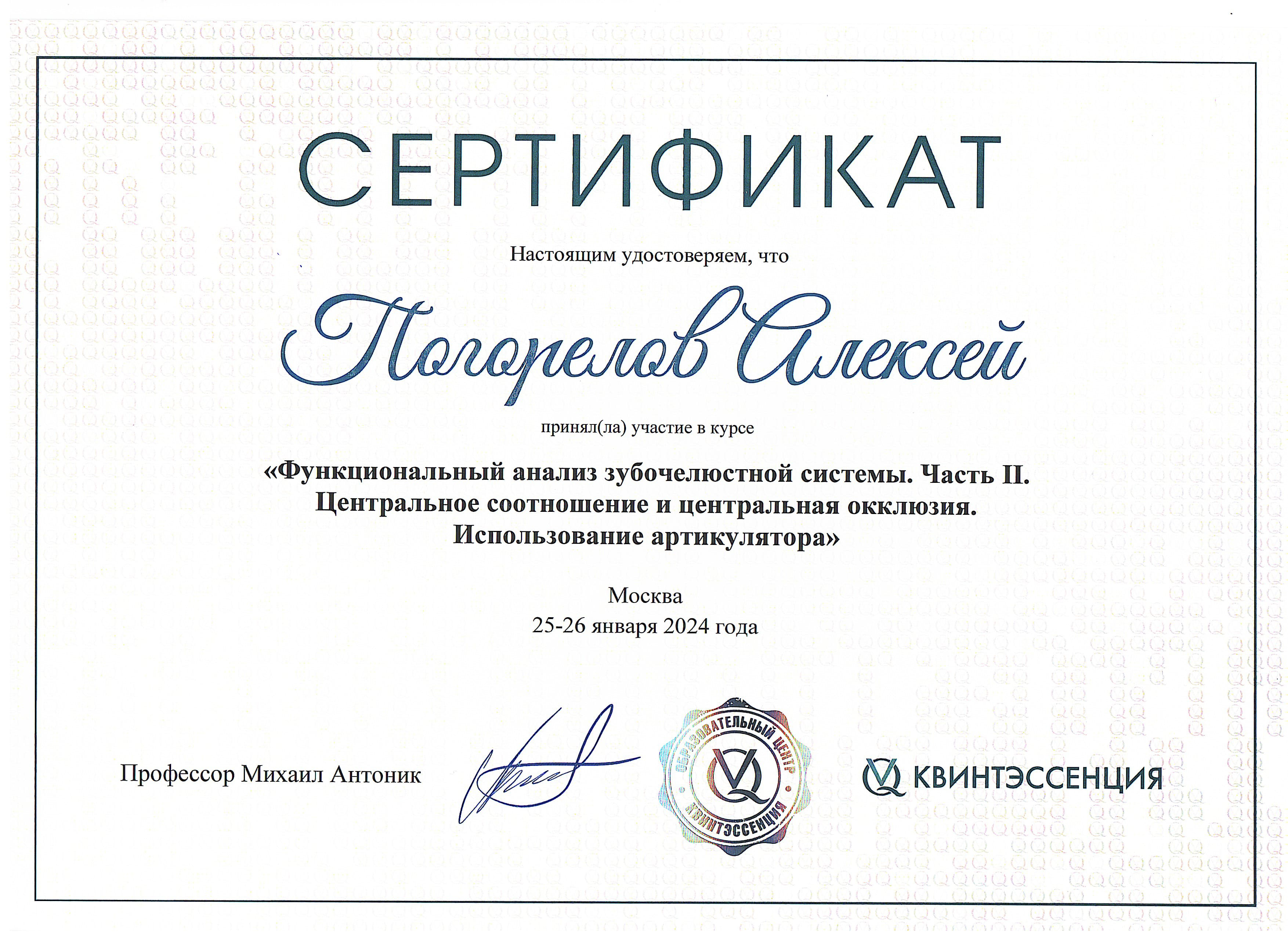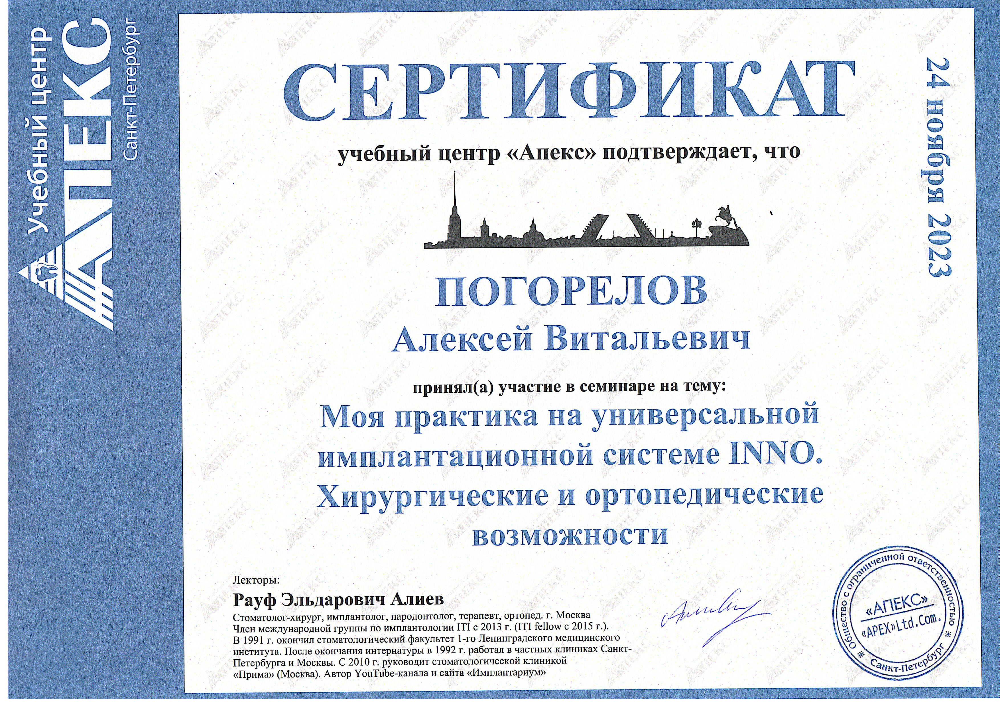 2016 г. — ФБГОУ ВО "Смоленский ГМУ". Научно-практический семинар "Современные технологии, применяемые при стоматологической реабилитации пациентов ортопедическими методами".